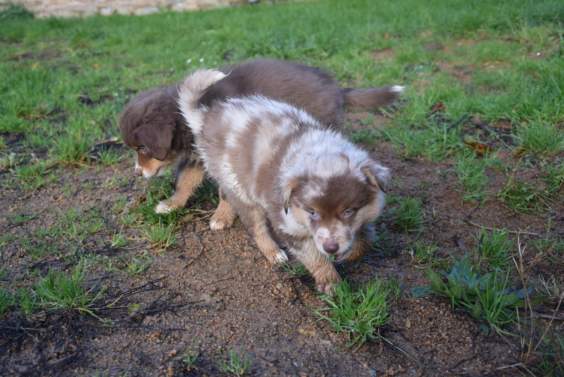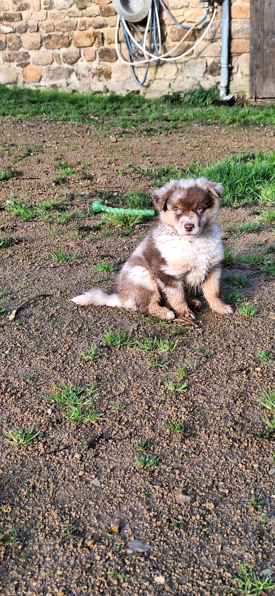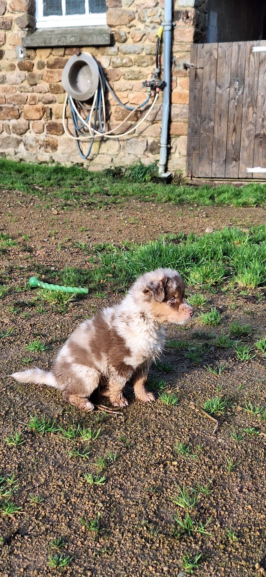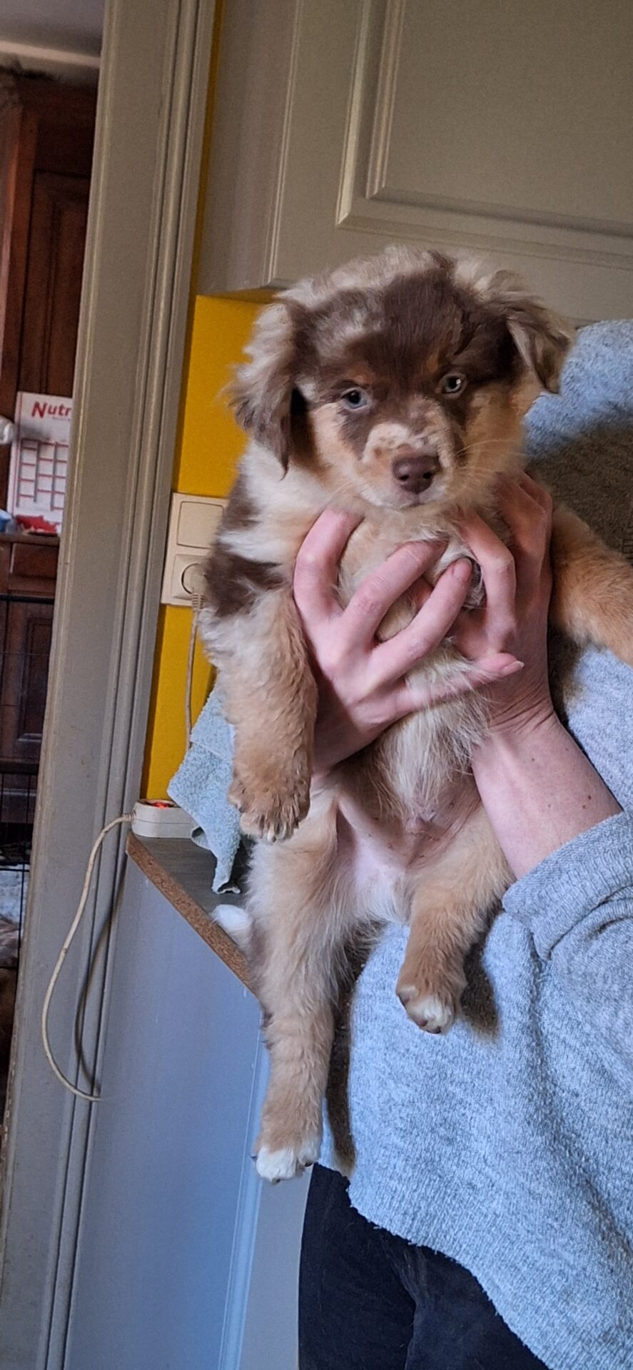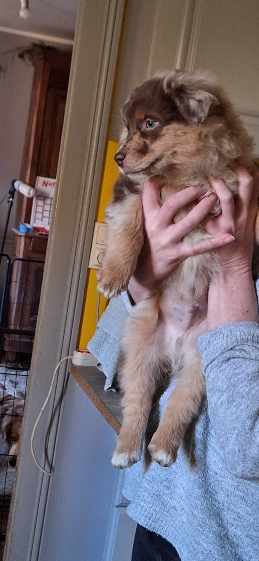 6 adorables loulous sont nés le 27 septembre 2025 . Rêva a bien travaillé,  Le rouge est à la mode cette fin d’année.        3 femelles et 3 mâles, dont 2 rouges tricolores , 3 rouges merles et 1 bleu merle.